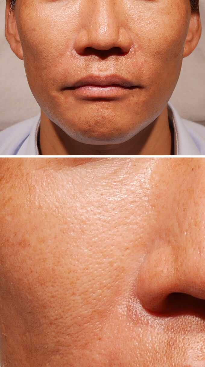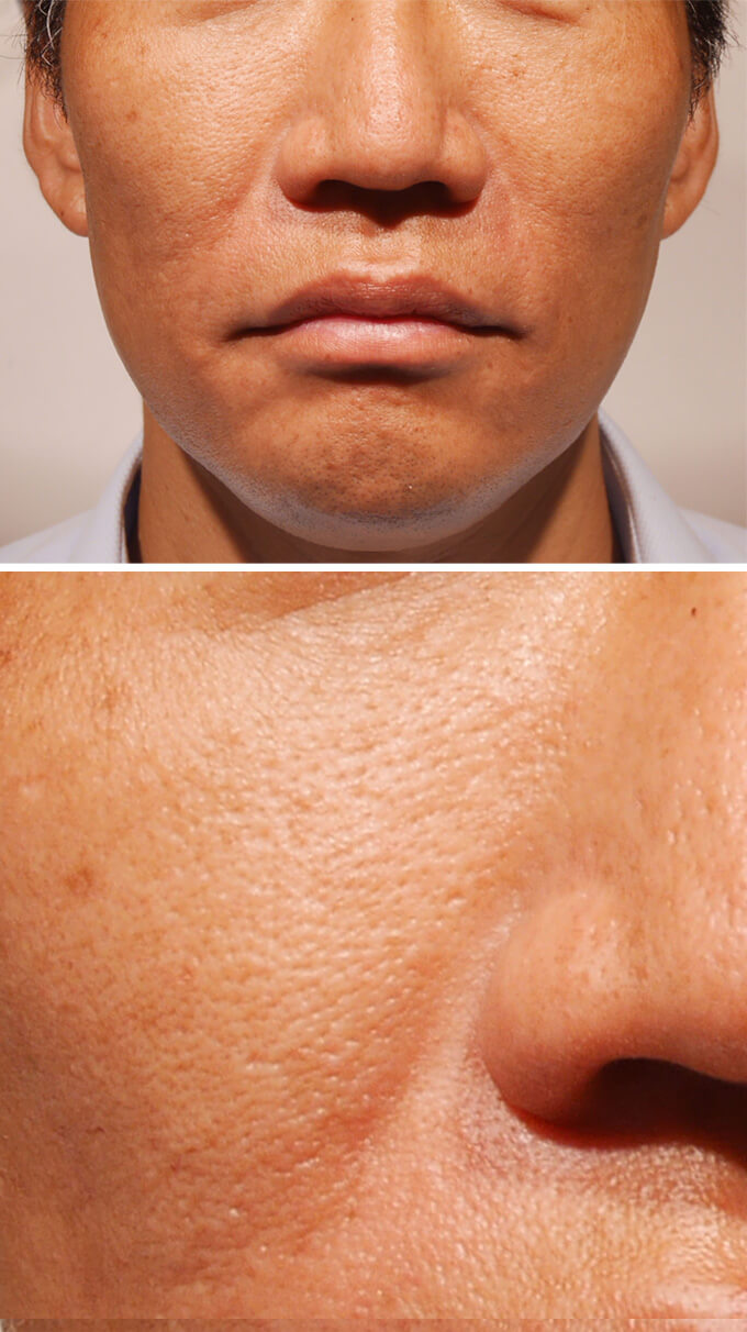 炭酸ガスレーザー(CO2レーザー)にてコメドを圧出しました。コメドが取り除かれてきれいになっています。