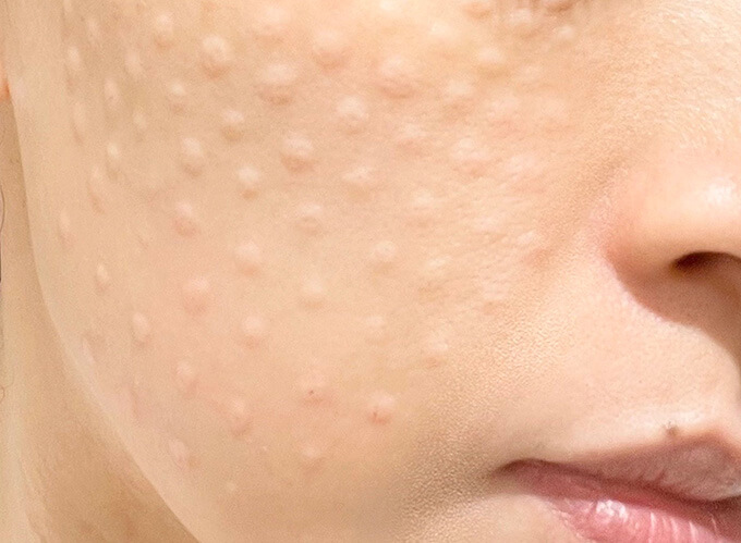 こめかみにコメド(白ニキビ)が目立っています。