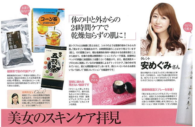 吉岡敦子院長が「ふわプル肌になるためのスキンケア」を紹介しました。タレントの安めぐみさんや読者モデルの方々の肌診断、肌の悩み別コスメについてもお話しさせて頂きました。