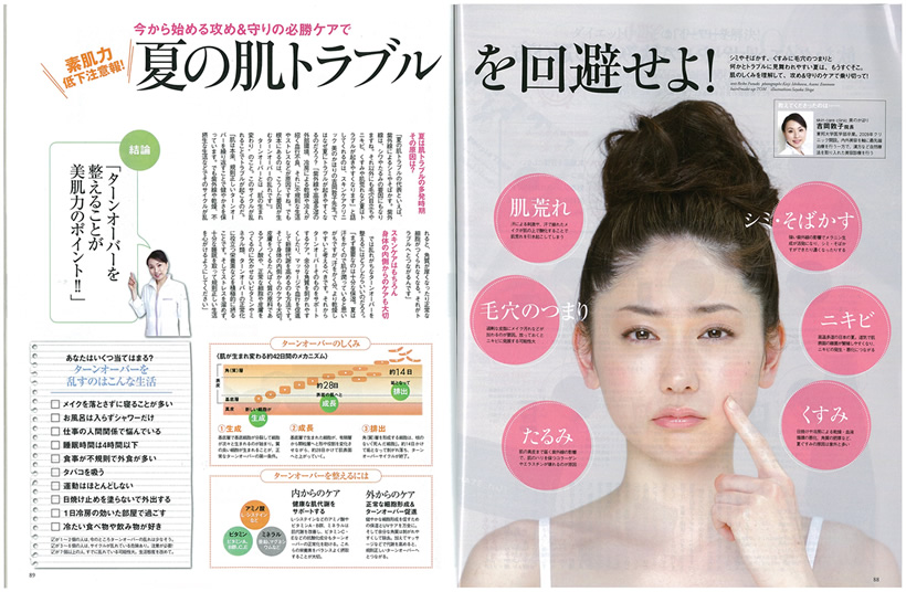 吉岡敦子院長が、夏の肌トラブルの原因や今から始める対処法についてお話しさせて頂きました。外側からのケアだけでなく内側からのケア法についてもご紹介しています。