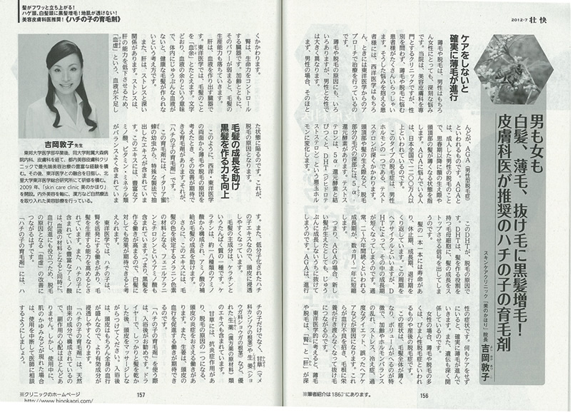 吉岡敦子院長が、「薄毛や抜け毛」についてお話しさせて頂きました。男性と女性では大きく異なる原因や改善法を、東洋医学の観点からもご紹介しています。